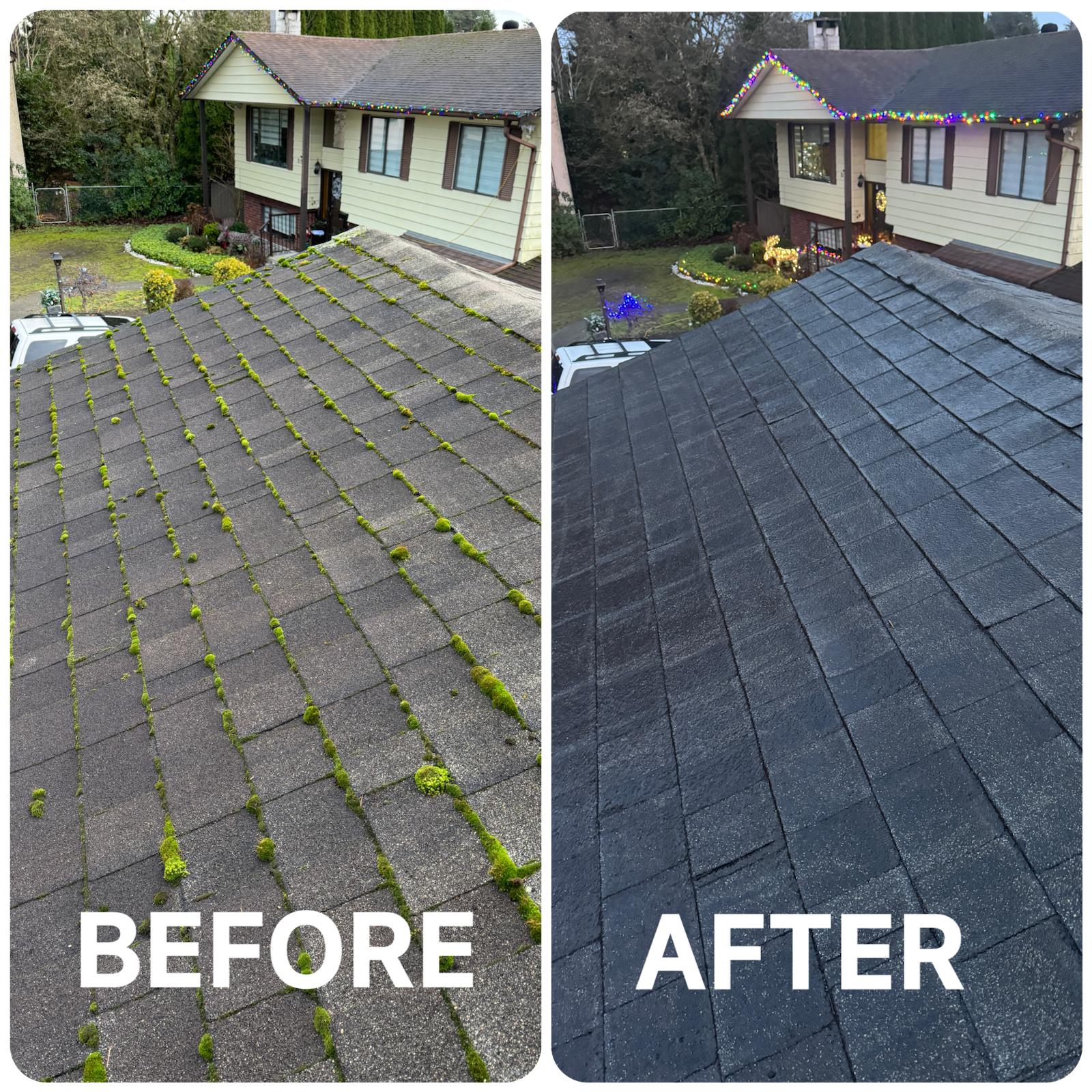 We specialize in roof moss removal, gutter cleaning, pressure washing, and exterior maintenance to keep your home clean, safe, and protected year-round.